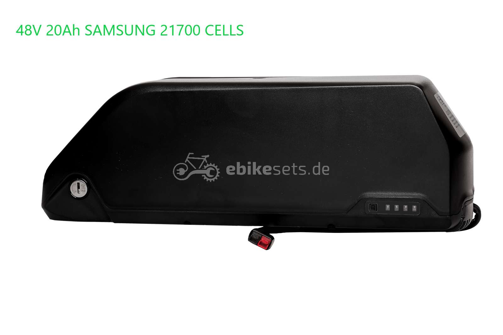 Mit diesem Umrüstsatz können Akkus mit unterschiedlicher Kapazität ausgewählt werden. Der Akku lässt sich mit einem Schlüssel verriegeln, so dass er nicht einfach aus dem Fahrrad entnommen werden kann. Alle unsere Akkus sind mit überdurchschnittlich hochwertigen A-Marken-Zellen ausgestattet. Alle unsere Mittelmotoren und Akkus sind mit einem „Plug-and-Play“-Anderson-Stecker für eine schnelle, zuverlässige und stabile Verbindung zu dem Akku ausgestattet.
