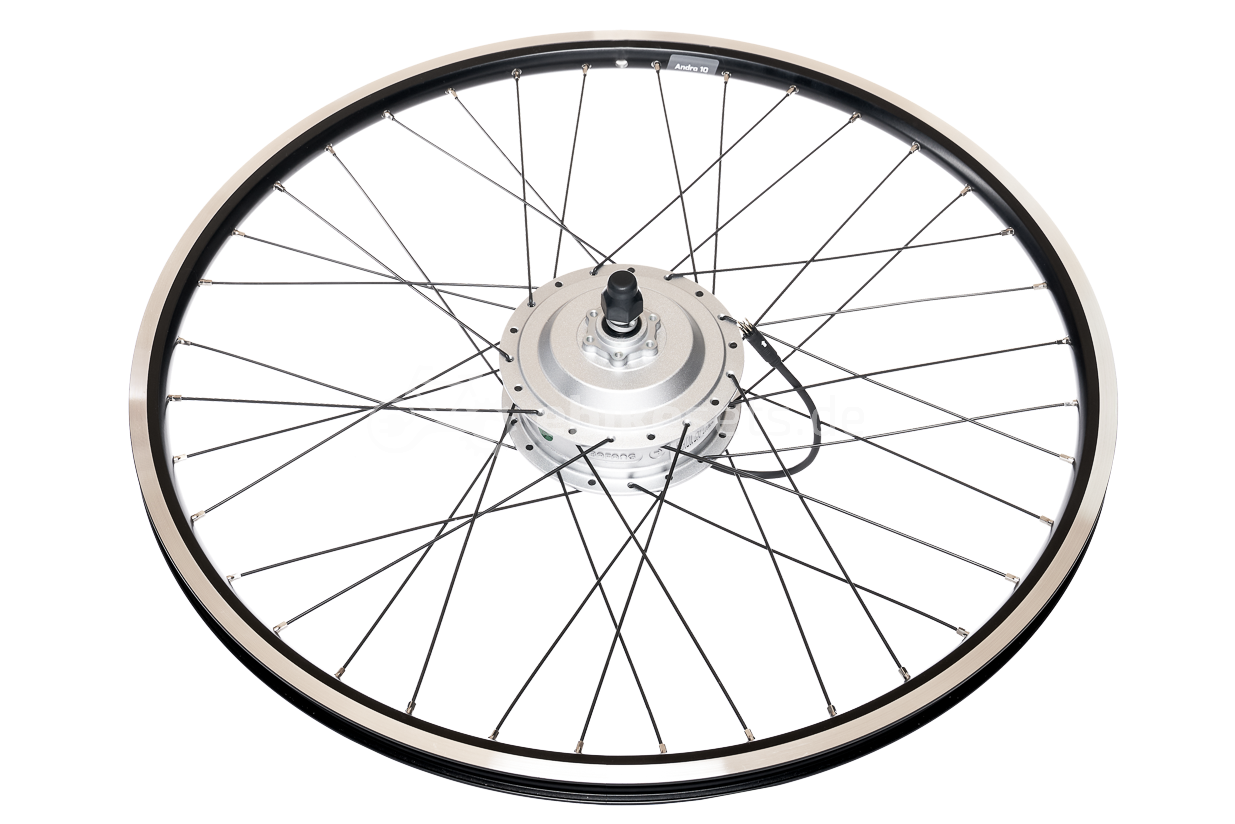 Dabei handelt es sich um einen separaten Motor inklusive Montageringen und Muttern. Wir können den Motor auch in eine doppelwandige Aluminiumfelge einspeichen. Alle unsere Vorderradmotoren sind mit den dickeren 13G-Speichen (2,34 mm) eingespeicht, was für ein stabiles und zuverlässiges Rad sorgt. Die Speichen sind in schwarzem und silbernem Edelstahl erhältlich. Speichennippel sind standardmäßig in Silber erhältlich. Wir können alle Radgrößen in Schwarz und Silber liefern. Sie können im Auswahlmenü angeben, welche Größe und Farbe Sie wünschen. Wir haben 28 Zoll Laufräder mit Speichenmotor auf Lager und werden innerhalb von 1-2 Werktagen geliefert. Andere Radgrößen werden innerhalb von 3-5 Werktagen geliefert.