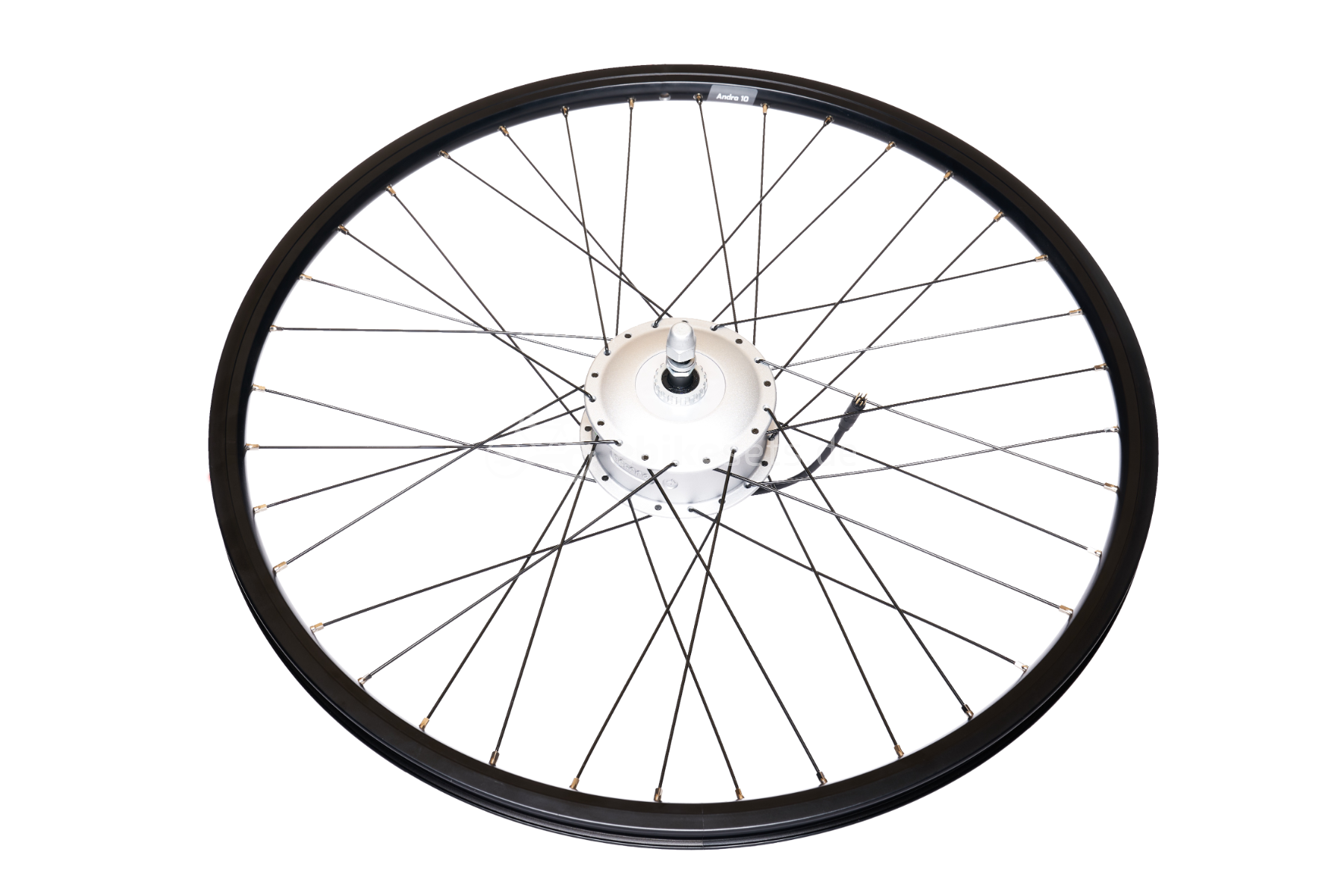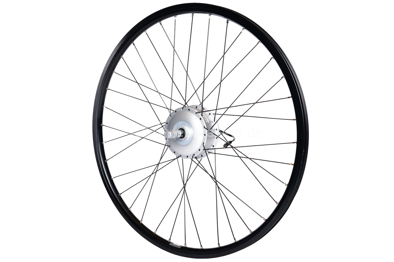 Dabei handelt es sich um einen separaten Motor inklusive Montageringen und Muttern. Wir können den Motor auch in eine doppelwandige Aluminiumfelge einspeichen. Alle unsere Vorderradmotoren sind mit den dickeren 13G-Speichen (2,34 mm) eingespeicht, was für ein stabiles und zuverlässiges Rad sorgt. Die Speichen sind in schwarzem und silbernem Edelstahl erhältlich. Speichennippel sind standardmäßig in Silber erhältlich. Wir können alle Radgrößen in Schwarz und Silber liefern. Sie können im Auswahlmenü angeben, welche Größe und Farbe Sie wünschen. Wir haben 28 Zoll Laufräder mit Speichenmotor auf Lager und werden innerhalb von 1-2 Werktagen geliefert. Andere Radgrößen werden innerhalb von 3-5 Werktagen geliefert.