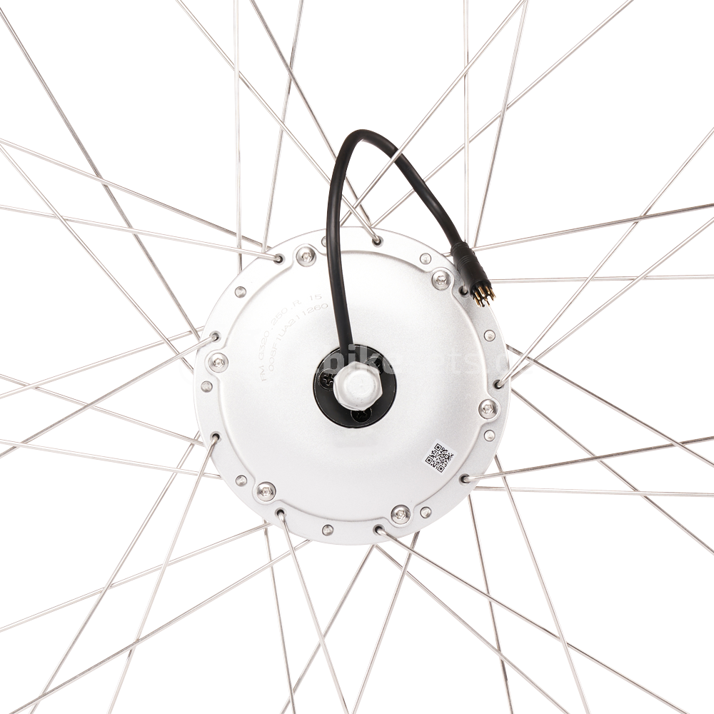 Dabei handelt es sich um einen separaten Motor inklusive Montageringen und Muttern. Wir können den Motor auch in eine doppelwandige Aluminiumfelge einspeichen. Alle unsere Vorderradmotoren sind mit den dickeren 13G-Speichen (2,34 mm) eingespeicht, was für ein stabiles und zuverlässiges Rad sorgt. Die Speichen sind in schwarzem und silbernem Edelstahl erhältlich. Speichennippel sind standardmäßig in Silber erhältlich. Wir können alle Radgrößen in Schwarz und Silber liefern. Sie können im Auswahlmenü angeben, welche Größe und Farbe Sie wünschen. Wir haben 28 Zoll Laufräder mit Speichenmotor auf Lager und werden innerhalb von 1-2 Werktagen geliefert. Andere Radgrößen werden innerhalb von 3-5 Werktagen geliefert.