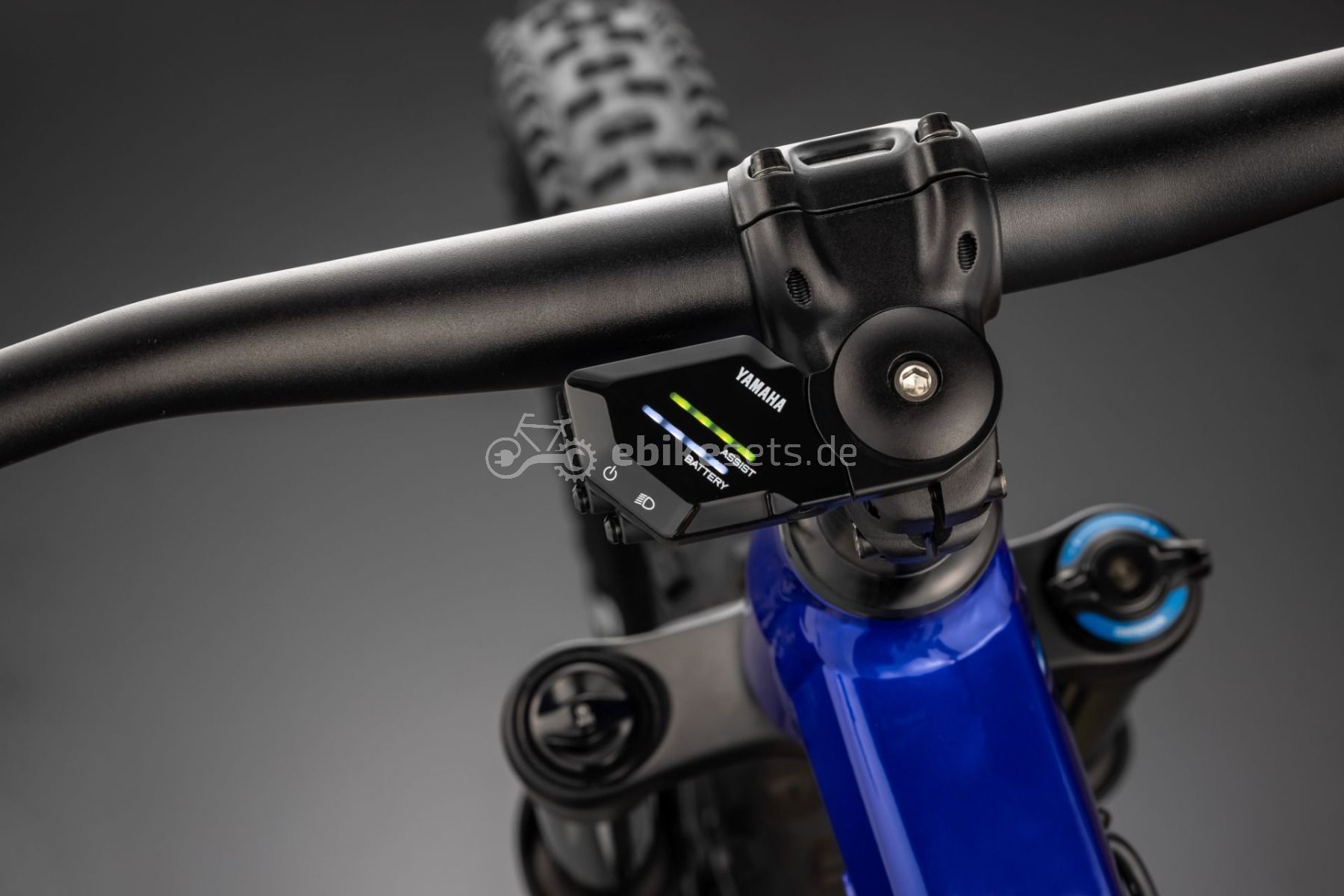 Das Display ist am Vorbau montiert und sorgt so für ein elegantes und übersichtliches Design, das auch beim Fahren oder Trail-Fahren gut lesbar ist. Zwei übersichtliche LED-Anzeigen informieren über den aktuellen Akkuladestand und die gewählte Unterstützungsstufe.
